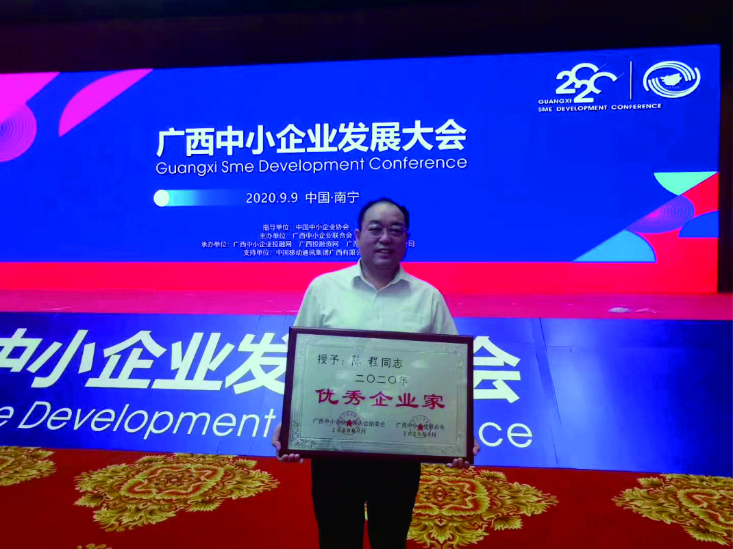公示董事長(zhǎng)陳程榮獲廣西中小企業(yè)“優(yōu)秀企業(yè)家”稱號(hào)